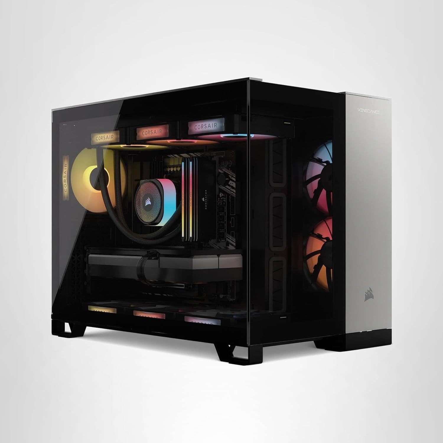 Probably one of the most eye-catching PC cases we’ve seen in some time, and one that gives you both side and overhead views of the inner workings. On top of that, you’ve got loads of RGB on the RAM, cooler, and fans, which can be customized all in one place via an app.